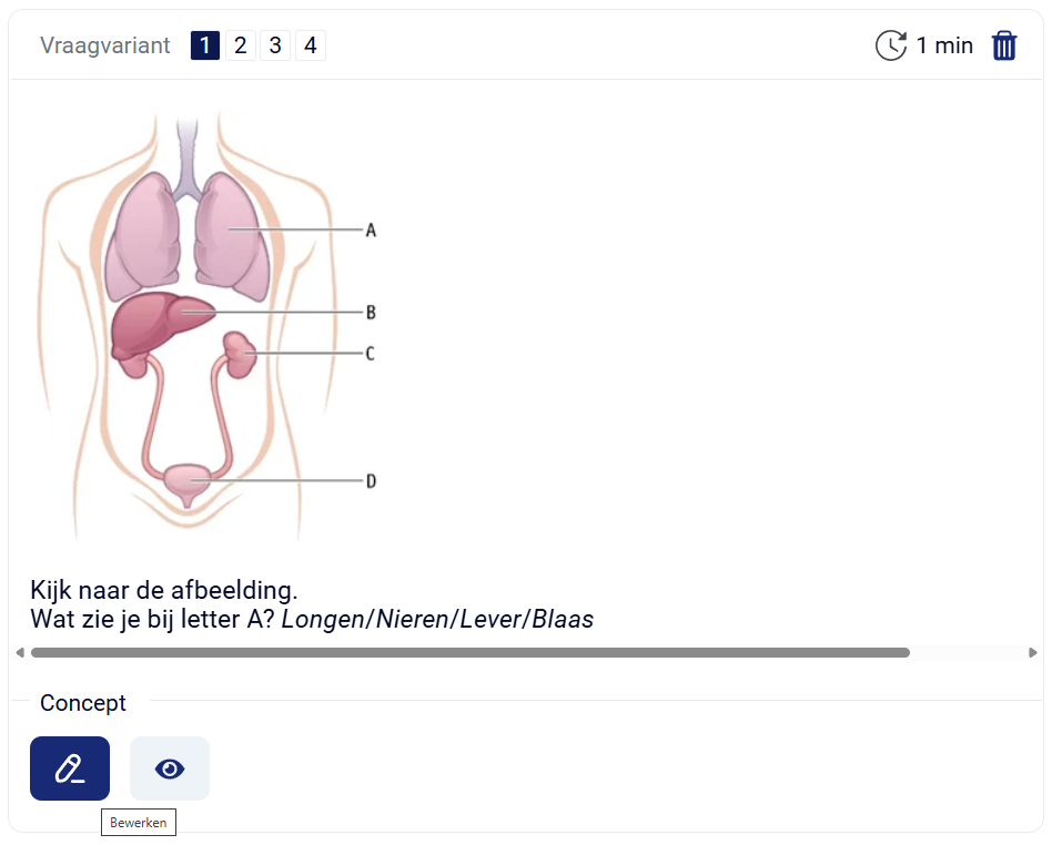 Op dit moment ondersteunt JIJ! nog geen hotspot-vragen. Dit vraagtype wordt in het eerste kwartaal van 2026 beschikbaar in JIJ! Plus Toetscreatie. Deze ontwikkeling heeft echter geen effect meer op toetsvragen die al gemigreerd zijn; hotspot-vragen uit Quayn worden niet meer automatisch omgezet naar dit vraagtype. Zodra het vraagtype beschikbaar is in JIJ!, kun je je vragen wel hiernaar omzetten. Tot die tijd kun je je gemigreerde hotspot-vragen op een andere manier inzetten. Hotspot-vragen uit Quayn zijn in JIJ! geïmporteerd als open vragen. Deze kun je als volgt bewerken: